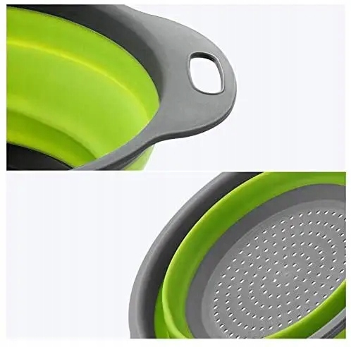 ✳️ Składana silikonowa konstrukcja pozwala zmniejszyć wysokość durszlaka, dzięki czemu łatwo przechowasz go w szafce lub szufladzie.