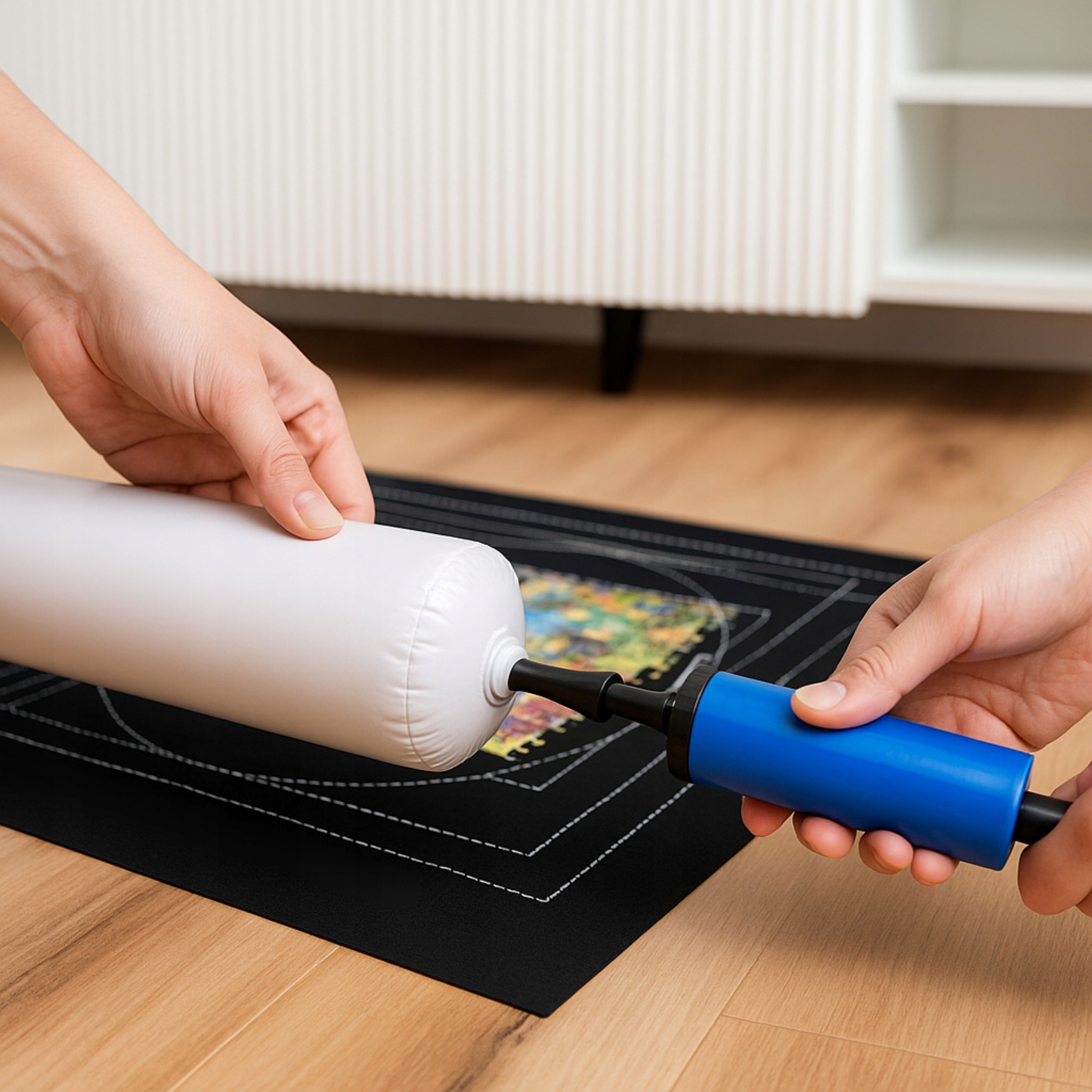 ➡️ W zestawie znajduje się pompowana tuba, która umożliwia bezpieczne zwinięcie maty z ułożonymi puzzlami.