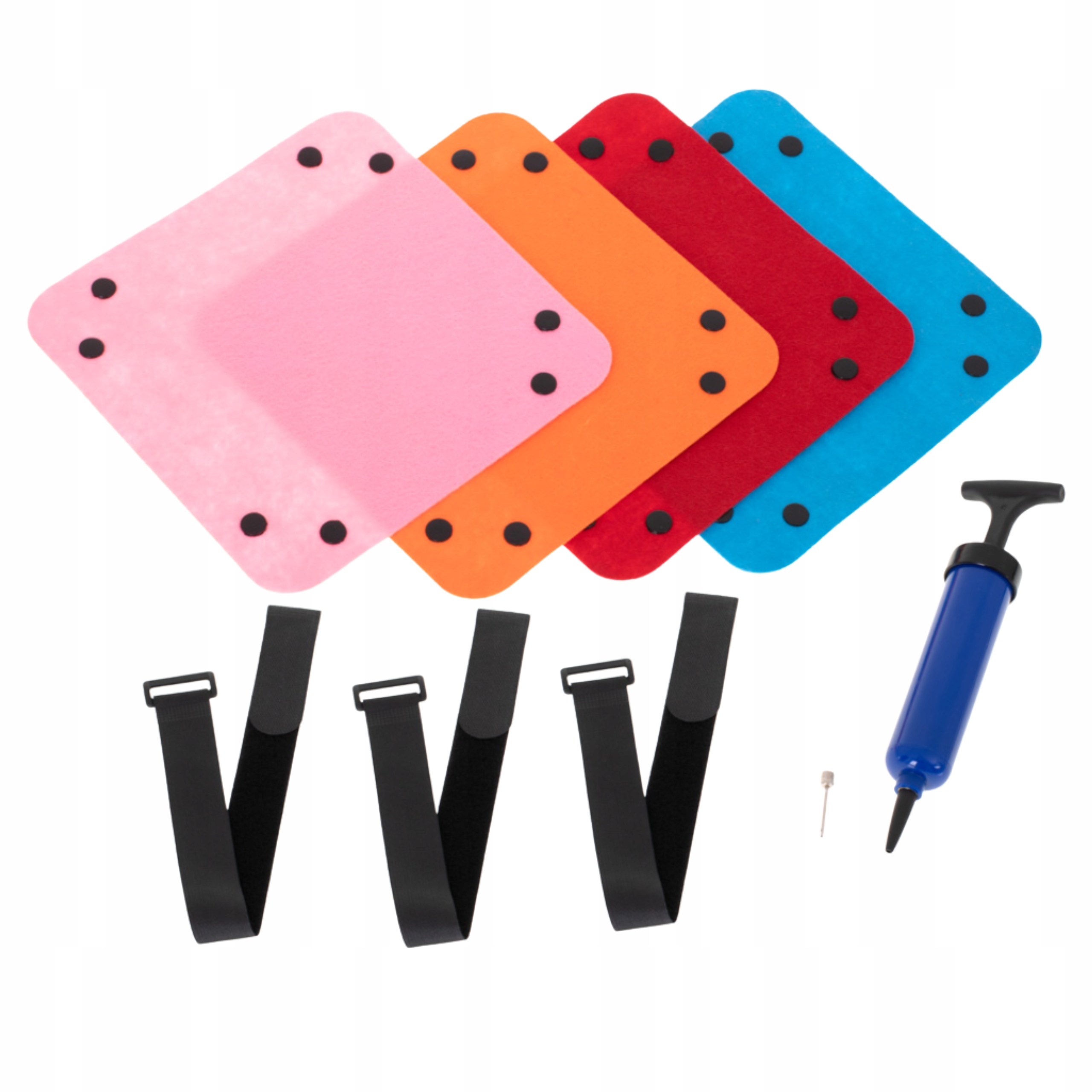 ☑️ W zestawie: mata, pompowana tuba, pompka, 4 sakiewki na puzzle, 3 paski mocujące, pokrowiec.