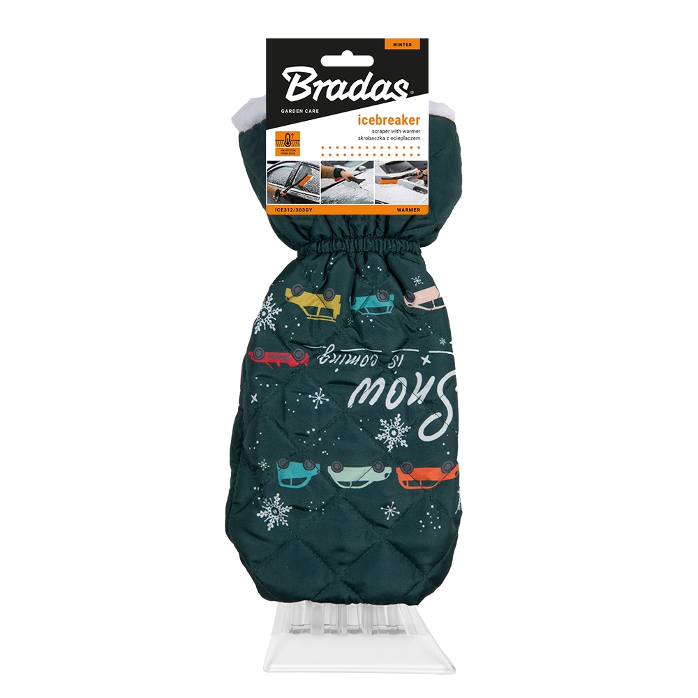 • Skrobak do szyb ICEBREAKER z ocieplaczem to praktyczne narzędzie do odśnieżania, które zapewnia komfort podczas zimowych warunków.