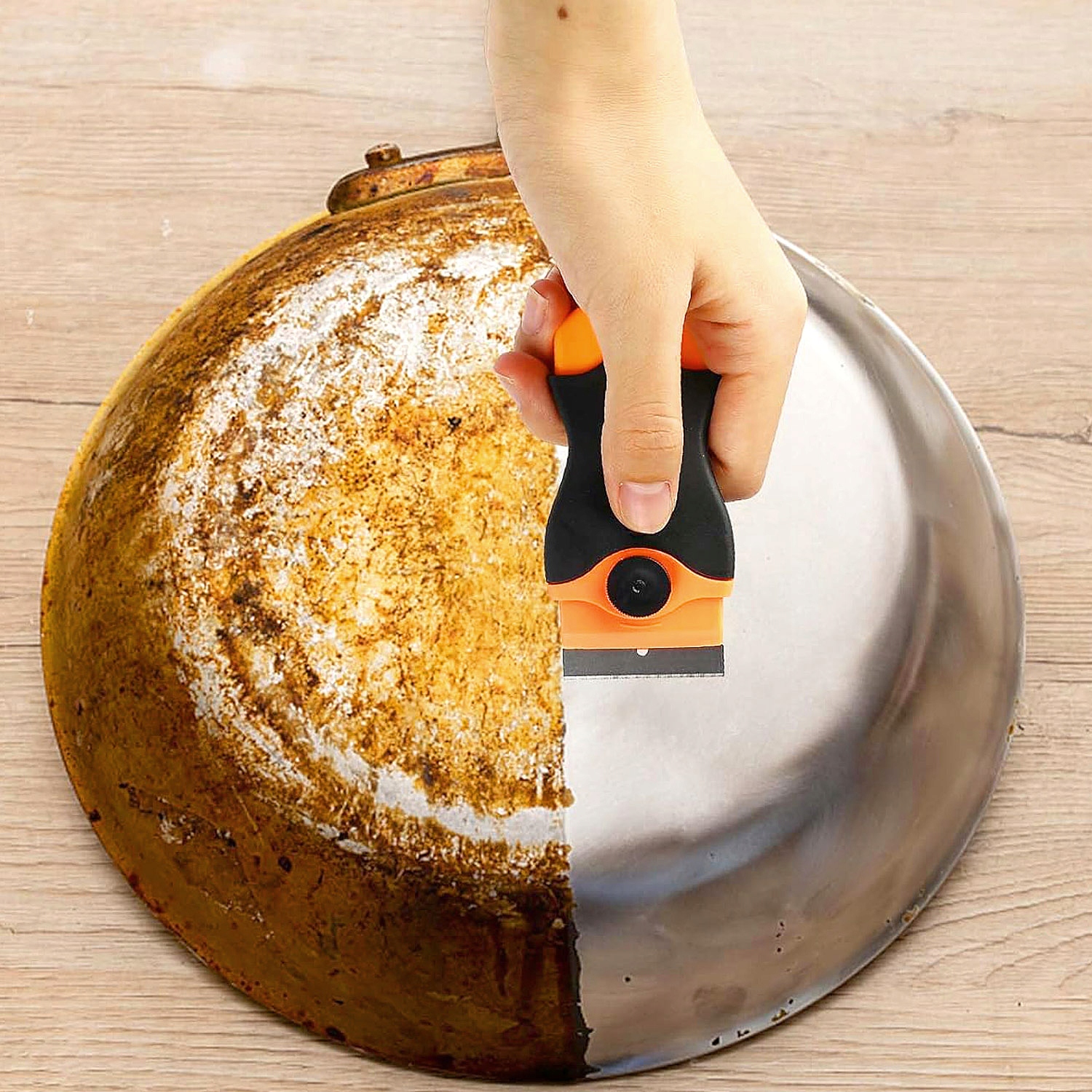 ⭐ Dzięki siedmiu ostrzom, które zawiera, skrobaczka skutecznie usuwa przyklejone zabrudzenia, jak także resztki gotowania czy nagar.