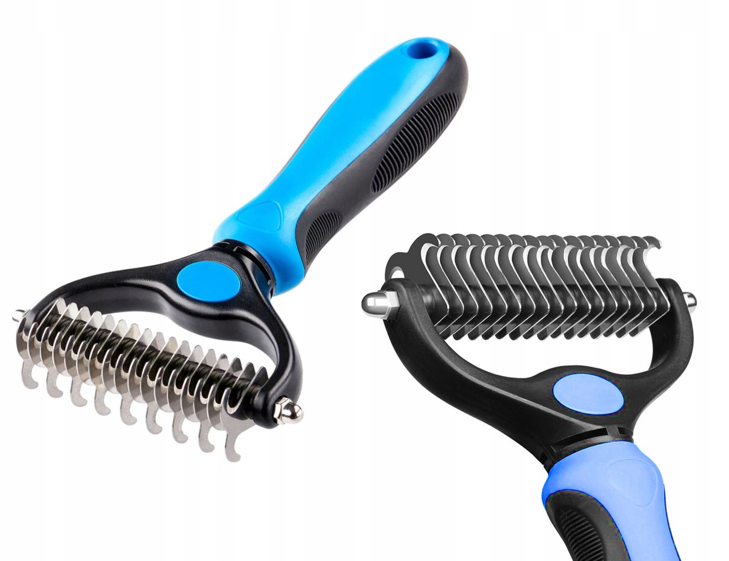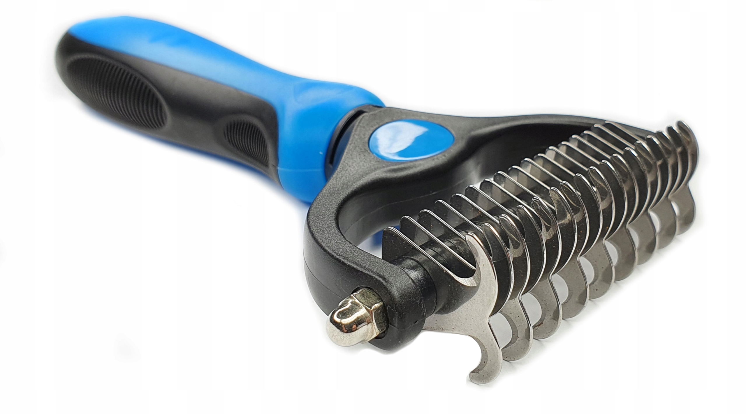 ➡️ Dwustronny trymer hakowy usuwa martwy podszerstek w kilka sekund.