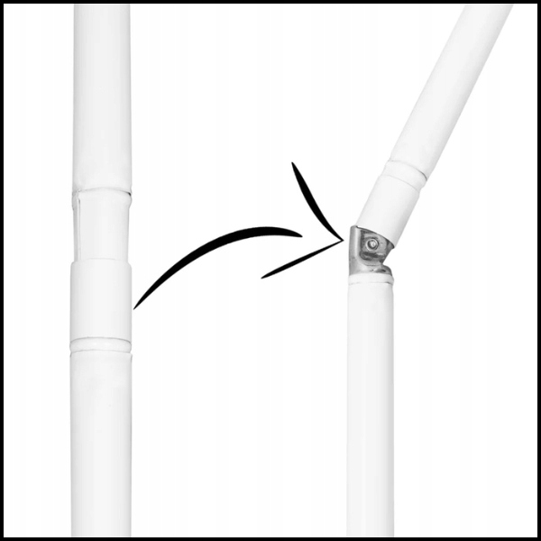 Możliwość pochylania parasola pozwala dopasować ustawienie czaszy do kąta padania promieni słonecznych, dzięki czemu zyskujemy cień o każdej porze dnia bez konieczności jego przestawiania z miejsca na miejsce. Tuż pod czaszą parasola na drążku znajduje się kolanko, które służy do zginania parasola pod danym kątem, cały proces przebiega sprawnie i nie wymaga użycia większej siły.